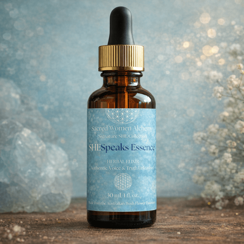 SHESpeaks Essence is vibrational medicine for the woman ready to reclaim her voice, not just her speaking voice, but her creative voice, her emotional voice, the voice of her deepest knowing. It supports you to speak from the heart without apology, to trust that your truth is worthy of being heard, and to release the fear that has kept you silent.